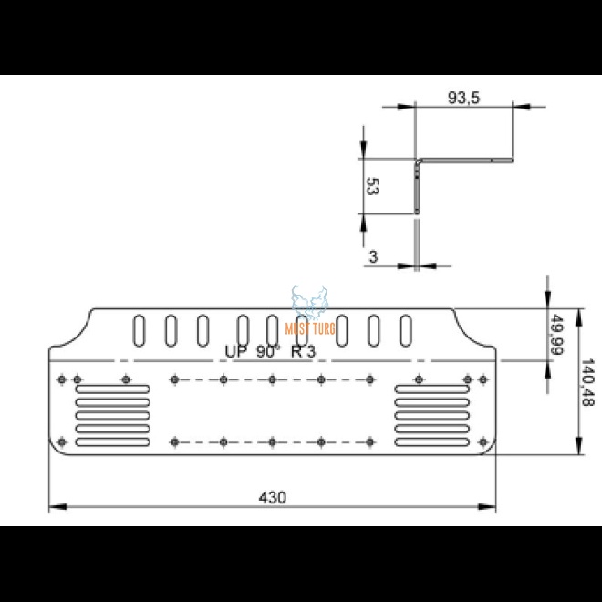Additional light mounting behind the license plate on the EU plate black 430mm