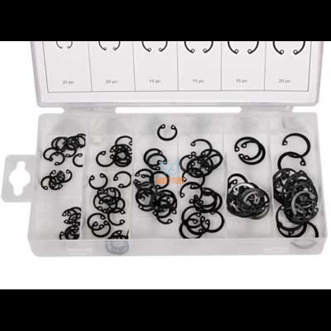 Kirjeldus: retaining ring for hole 105pcs, ø11-20mm, ø (pcs): 11 (20), 13 (20), 14 (15), 16 (15), 19 (15), 20 (20)mm