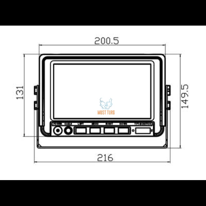 Kirjeldus: TFT LCD HD-ekraan, IP69K, 8G, 2 kanalit, poolitatav, ABS/PC korpus, lühisekaitse 7" TFT LCD, HD 1024x600px, 600cd/m², 500:1, vaatenurk: u 80° - d 85° - r 85° - l 80°, reaktsiooniaeg: 25ms, töötemperatuur -20°C … +70°C, 216x149.5x85mm (kinnitusega)
