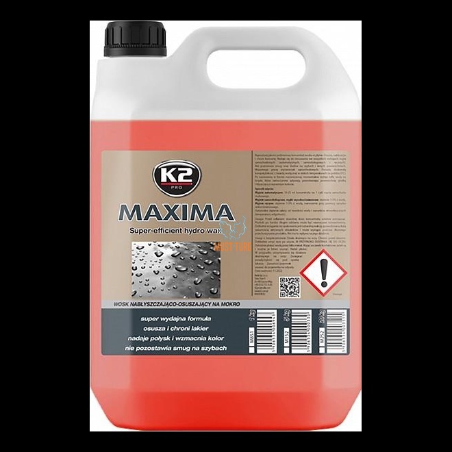 Ideaalne vahend automaatpesulas õhuga kuivatamiseks kui ka käsipesulas silikoonkaabitsat kasutades. Pihustage lahjendatud segu kuivatatavale pinnale ja seejärel kuivatage pind. Peale kasutamist moodustub pinnale kaitsev vahakiht, mis muudab pinna vetthülgavaks, samas jätmata seda rasvaseks. Moodustunud vahakiht kaitseb pinda väliste ilmastikutingimuste, mustuse ja muu saaste eest. Toode on stabiilne ka madalatel temperatuuridel (0°C) ja säilitab oma omadused ka kareda veega, mis muudab toote kasutamise mugavaks ka talvisel perioodil. Maxima kuivatusvaha annab pinnale sügava läike jätmata seejuures triipe. Lahjendamine:
