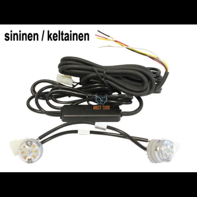 Kirjeldus: sinine /kollane, 2 tk., 6x3W LED-elementi ja juhtplokk, 19 vilkumisrežiimi. sobib peaaegu kõikidesse tuledesse, 12V 1.8A