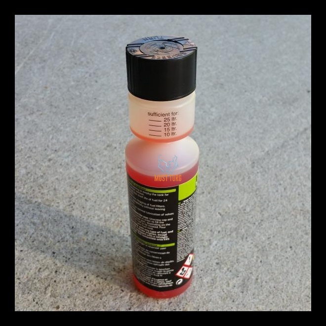 Avage kork ning pigistage pudelit, et täita mõõtepaaki sõltuvalt töödeldava kütuse kogusest. Valage toode kütusepaaki. Valmis seguga peab ka mootor töötama mõnda aega, et vältida tavakütusega hoiustamist.