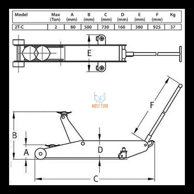 Madal mudel - algkõrgus 80mm. Maksimaalne tõstekõrgus 500mm. Kandevõime 2T. Garaažitungraual on terasest keevitatud raam, millele on lisatud tugevdused. Kahe pumbaga tõstemehhanism + tõstepedaal. Happe- ja õlikindlad plastikrattad ei tekita palju müra ja säästavad põrandat. O-otsaga käepide. Tasuta kaasas kummipadi. Turvaline lisaklapp tagab kontrollitava langetuse. Patenteeritud tõstesilindri plastkate, mis tagab et liiv ja teesool ei pääse tõstesilindri tööpindadele. Pikkus 700mm, kaal vaid 37kg.