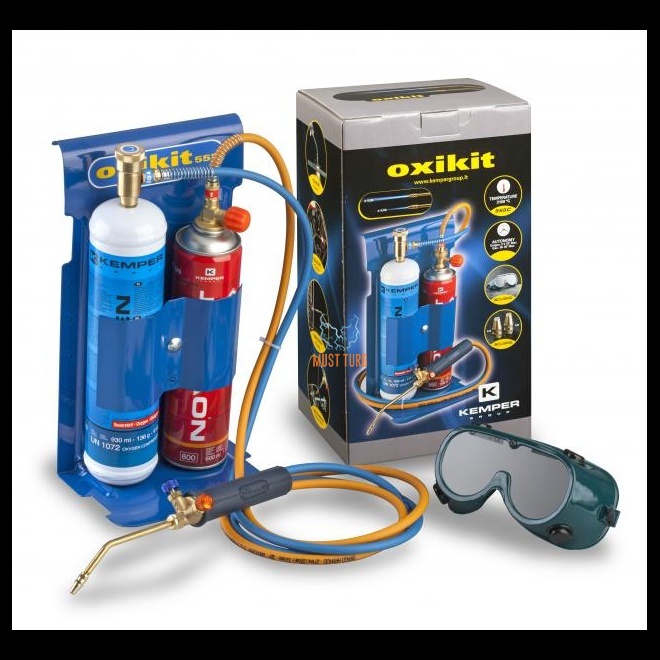 Portatiivne gaasikeevituskomplekt, komplektis 336g gaasiballoon, 136g hapnikuballoon, põleti koos koos vooliku ja käepidemega, kaitseprillid ja üks põleti ots.