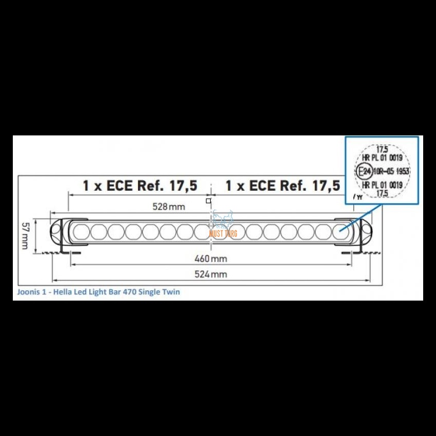 High beam Hella LightBar 470 Single Twin 36W 12-24V ref.17.5+17.5 ECE R10