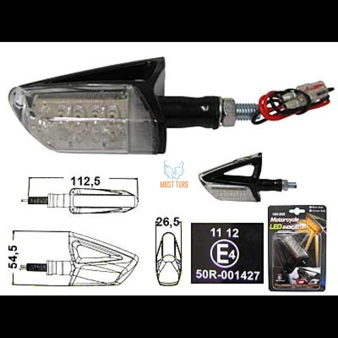 Kirjeldus: Mootorratas/ATV, 15xLED, vilgub kirkalt, valge klaas, plastik jalg, 8mm polt, 0,5W