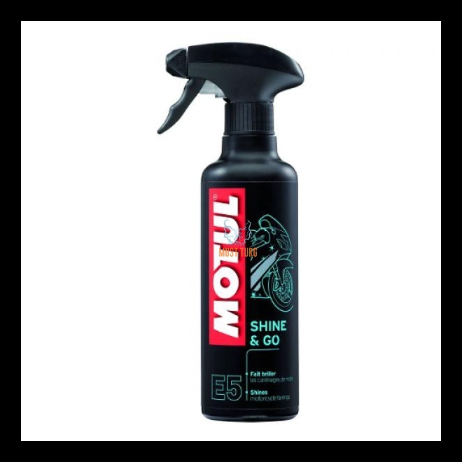 Väliste pindade jaoks mõeldud E5 Shine & Go lisab läiget ning taastab tooni plastikutel, värvil ja peeglitel. Jätab kauakestva mittekleepuva kaitsva kihi.