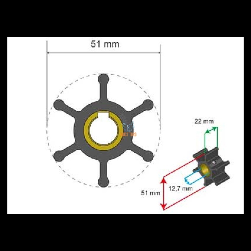 Premium Impeller kit 51x12.7x22mm 55g Jabsco JMP Yanmar