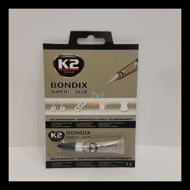 Kiirliim K2 BONDIX on tugev ühekomponentne universaalne tsüanoakrülaatliim plastikust, metallist, puidust, kummist, nahast, klaasist, portselanist või paberist elementide ühendamiseks. See töötab ülikiiresti, liimib liimitavad pinnad 10-20 sekundiga. See võimaldab teil kiiresti ja lihtsalt parandada: mänguasju, tasse, kruuse, vaase, kummivoolikuid, ehteid jne. See sobib suurepäraselt modelleerimisrakenduste jaoks. Asendamatu kodus, garaažis või töökojas. Etüültsüanoakrülaatliim sobib ideaalselt EPDM-, NBR- ja neopreennööridest valmistatud tihendite liimimiseks. Täpne aplikaator võimaldab liimida raskesti ligipääsetavates kohtades, nt pragudes. See kõveneb täielikult sekunditega ja saavutab optimaalse sideme tugevuse. Äärmiselt tõhus väga kõrge nakkuvusega. Kõveneb toatemperatuuril.