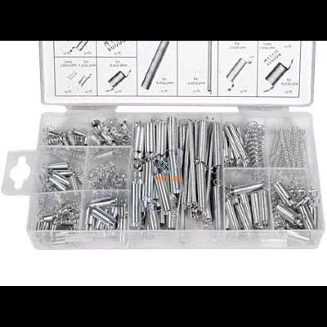 Kirjeldus: Compressing and extension springs 200pc mm (pcs): 6.4x10.3 (10), 7.1x12.7 (10), 9.5x15.9 (6), 5.6x17.5 (10), 7.1x19.1 (10), 9.5x19.1 (12), 9.1x34.9 (8), 5.6x38.1 (10), EXTENSION mm (pcs): 5.2x20 (10), 6.5x22.2 (10), 5.6x25.4 (10), 7.9x28.6 (8), 8.0x31.8 (10), 8.7x36.5 (10), 7.1x38.1 (10), 4.8x44.5 (8), 8.0x44.5 (12), 8.7x46.8 (12), 7.1x50.8 (12), 4.0x79.4 (12)