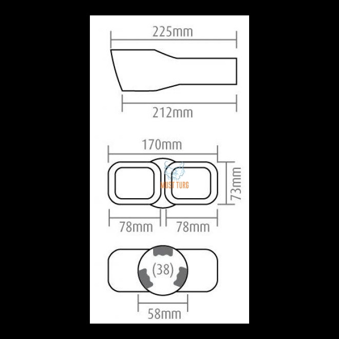 Stainless steel end 225x170mm