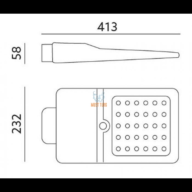 Laius 232 mm, pikkus 413 mm, paksus 58 mm
