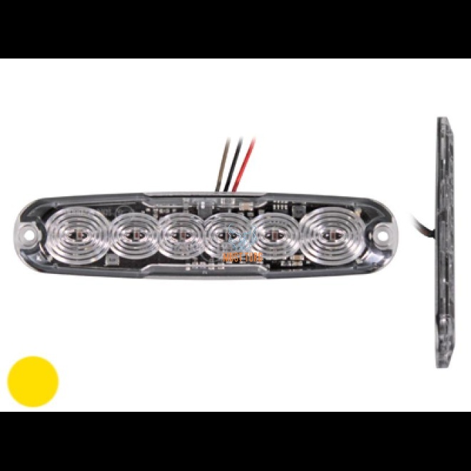 Kirjeldus: Kollane vilkur, valge klaas, superõhuke 6xLED pindvilkur, saab sünkroniseerida teiste märgutuledega, ILMA E-sertifikaadita, poldivahe 120mm, võimalik teipkinnitus, kinnitused -510 ja -513