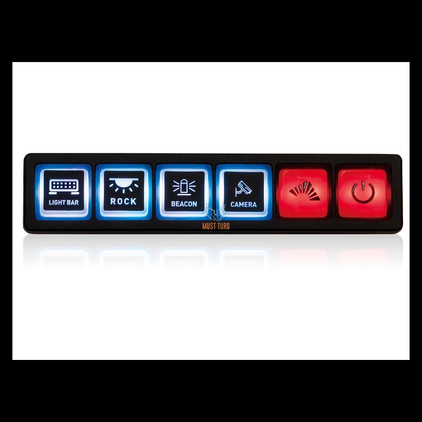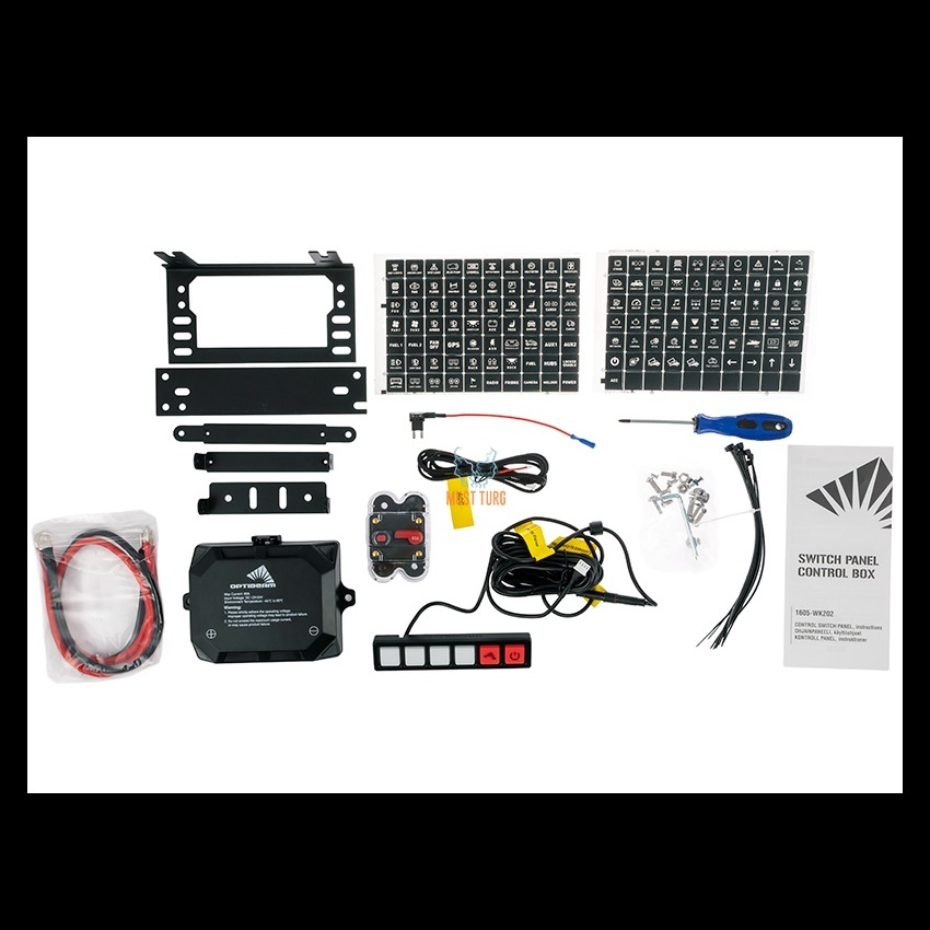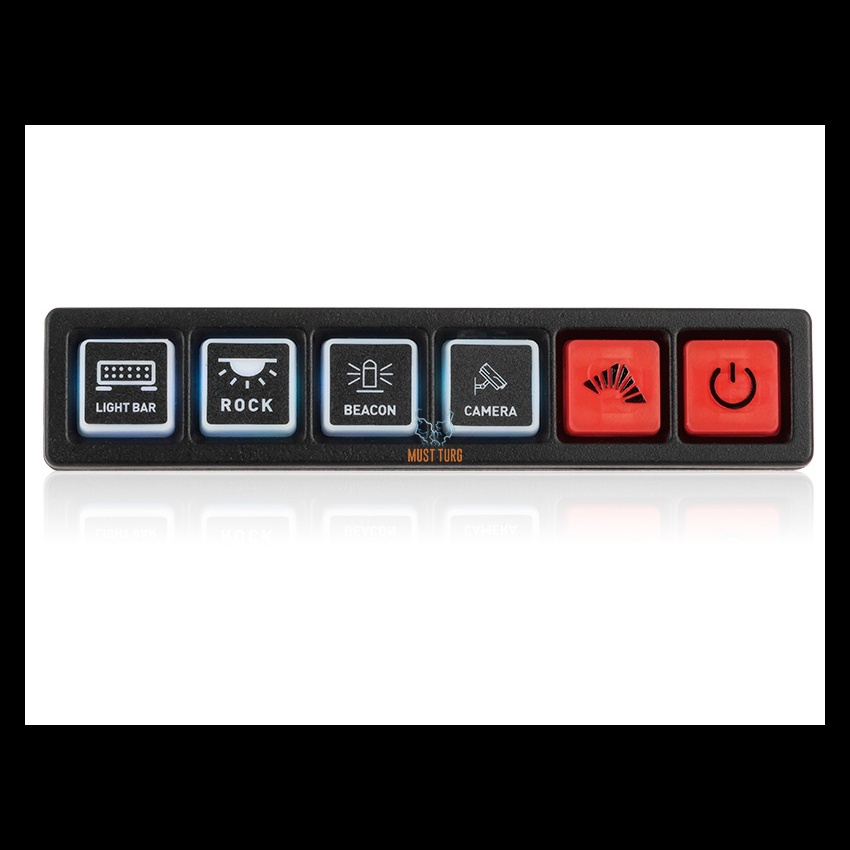 Kirjeldus: Optibeam juhtpaneel on mõeldud kiirendama ja hõlbustama lisaseadmete paigaldamist ja juhtimist erinevates 12V/24V töökeskkondades, mille koguvõimsus on kuni 60 amprit. Enam ei ole vaja paigaldada eraldi seadmespetsiifilisi kaitsmeid, releesid või kaitselüliteid, vaid kasutatavad funktsioonid ühendatakse otse 4-kanalilise juhtpaneeliga, kust neid juhitakse oma 6-nupulise juhtlülitiga.