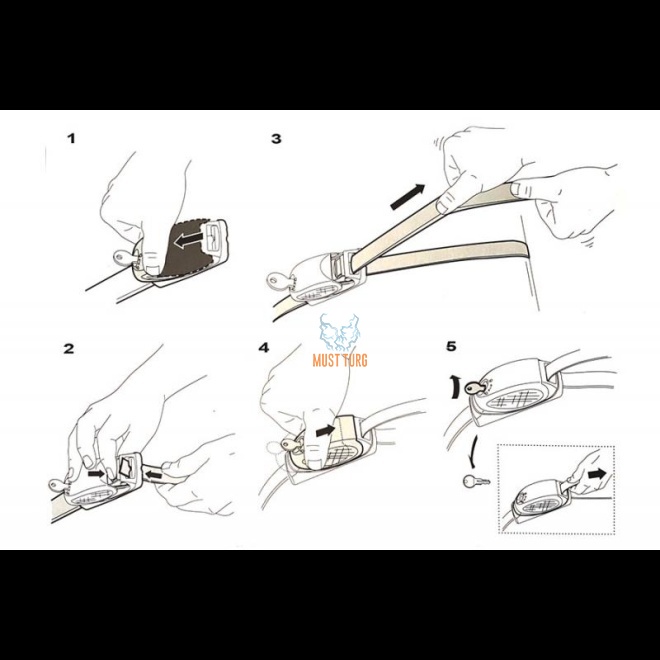 Uuenduslik lukustatav rihm hoiab ära süsta või muu katuseraamile kinnitatud varustuse varguse.