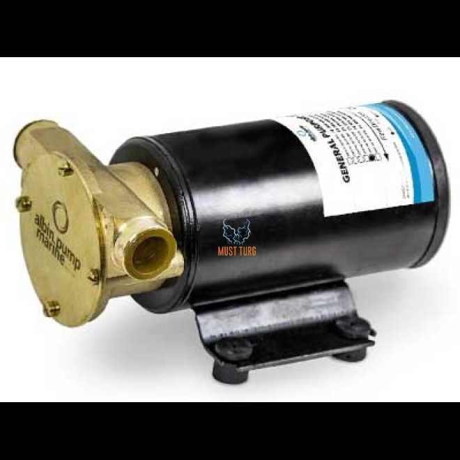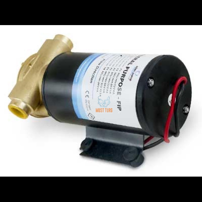 Kirjeldus: F4 size FIP (flexible impeller pump) pump for water, oils and chemicals, self priming up tp 5m vertical lift, pump body brass, stainless steel shaft and high quality impeller, reversible flow direction by changing polarity, ø19mm (3/4") connectors, fuse 12.5A, CE 94/25/ECC, ISO8846, 89/336/EEC, EN51014 1993, 1kg