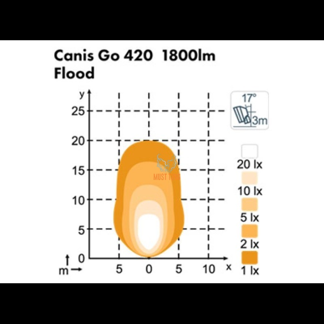 Kirjeldus: Canis GO 420, 1800lm, värvitemperatuur 5000K, lai valgusvihk, EMC-sertifikaat: CISPR25, Class 5, ADR approved, integreeritud Deutsch pistik 2-klemmiga, IP68, 0.5kg