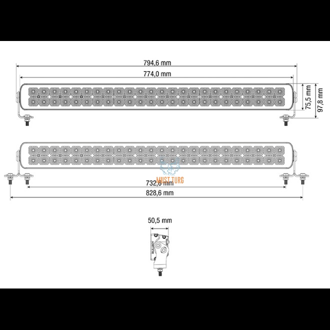Mõõtmed: 774.00 x 75.50 (97.80) x 50.50mm