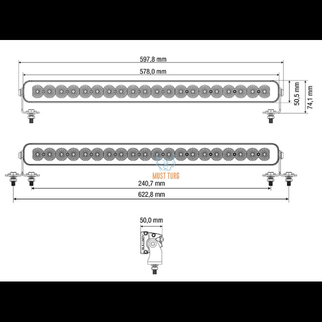 Mõõtmed: 578.00 x 50.50 (74.10) x 50.00mm