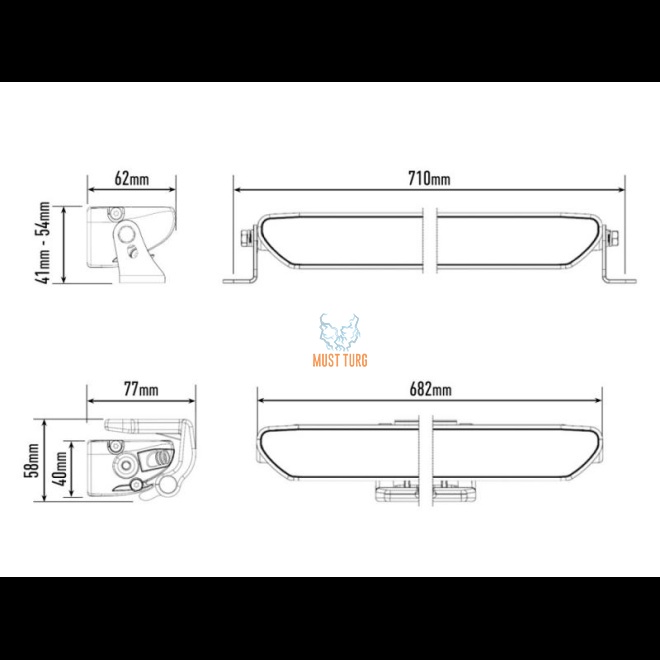 Mõõtmed: 682x62x40mm