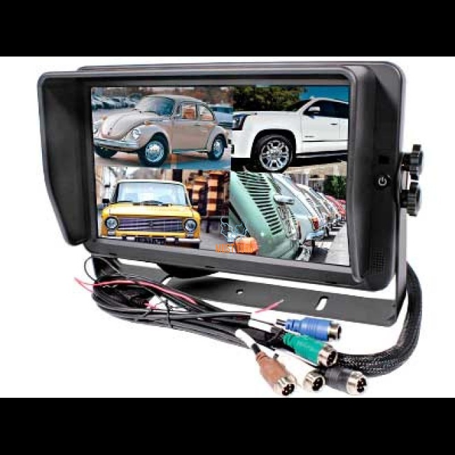 Kirjeldus: 1024x600px, 500cd/m², 600:1, image can be zoomed, flipped horinzotally or vertically, multiple image modes: single - dual - triplex - quad - trefoil - Y-split - H-split, support 5 triggers: trigger priority and delay are selectable, support auto scan: scan select and scan time selectable, backlight adjustment manually (3 levels) or automatically, parking line, OSD with 9 languages, short circuit protection and alarm, two brackets: U-shape and center mount, wiewing angles: u 70° - d 50° - r/l 70°, operating temperature: -20° ... +70°C RH90%