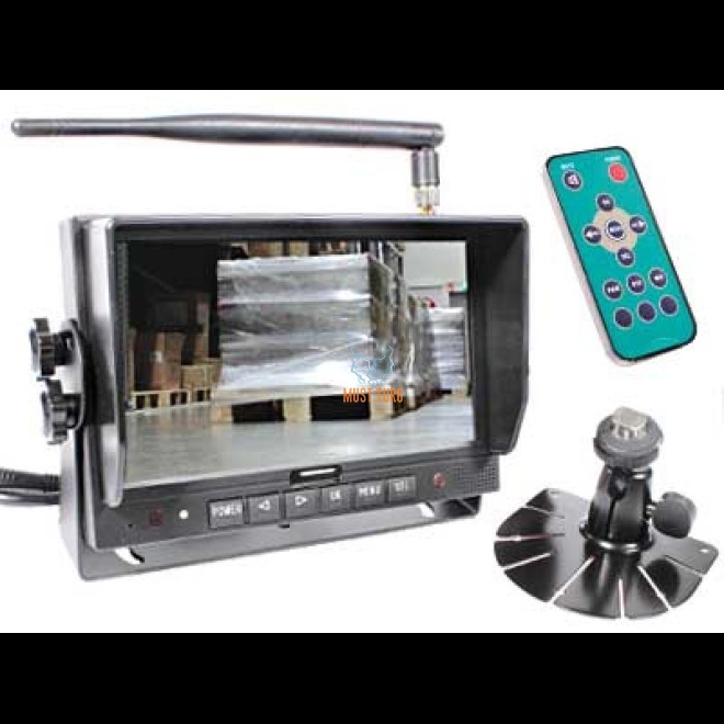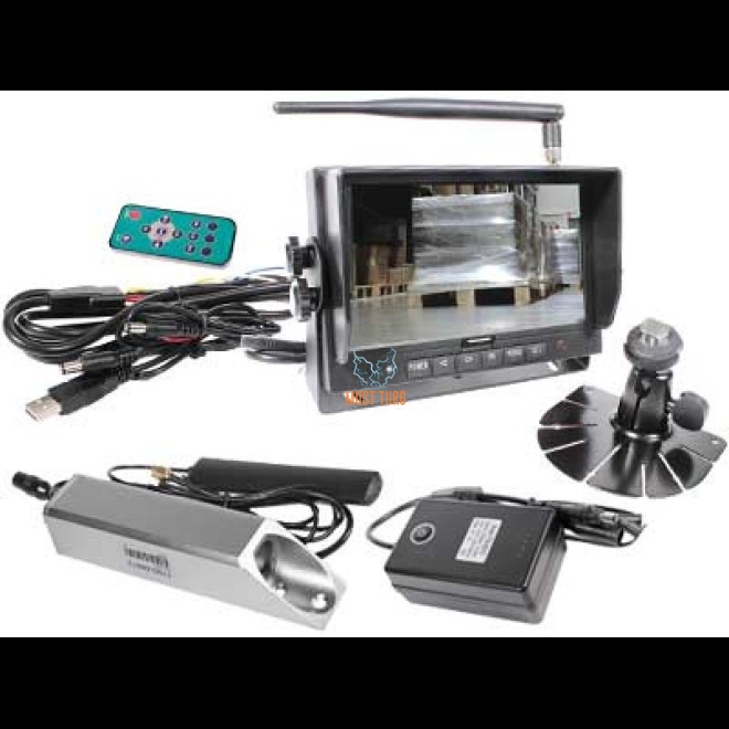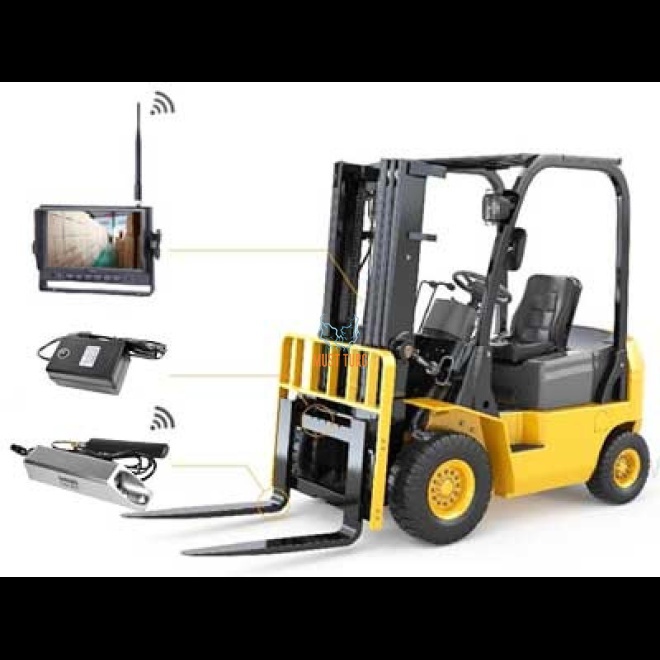Kirjeldus: Juhtmevaba tõstukikaamera, paigaldamine magnetiga tõstukikahvli külge, taaslaetavate patareidega, 7" ekraan, automaatne ühendamine, juhtmevaba signaali edastuskaugus kuni 100m, 4 sisendkanalit, võimalus ühendada lisaekraan, ühe pildi režiim ning automaatne perioodiline vahetus, automaatne kanalituvastus; igat kanalit saab individuaalselt seadistada pilti tuvastama või mitte, sisseehitatud salvestaja (kuni 128GB Micro SD mälukaart), reaalajas salvestamine ning taasesitamine.