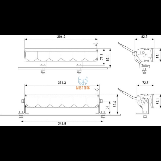 Valguspaneeli saab mitmekülgseks paigaldamiseks paigaldada nii külgedele, taha kui ka ülaosale. Lisaks kaabel koos 1000mm DT pistikuga (3 pin).