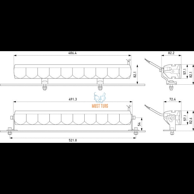 Mõõdud 57 x 486 x 73 mm
