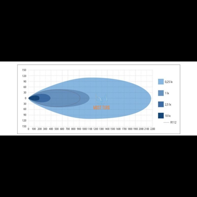 Kirjeldus: 4700K, 12V: 14,96A (täisvõimsus), 1,45A (R112), 14500lm (täisvõimsus), 2400lm (R112), 1 lux @ 1087m (täisvõimsus), 455m (R112), E-mark R10, R112