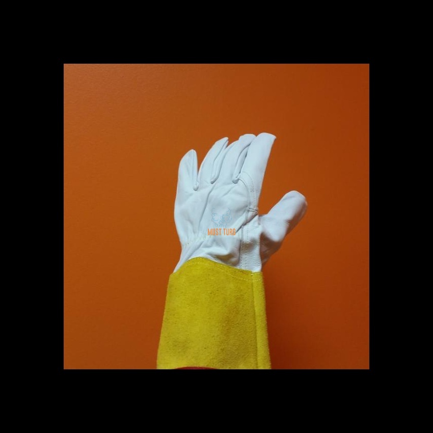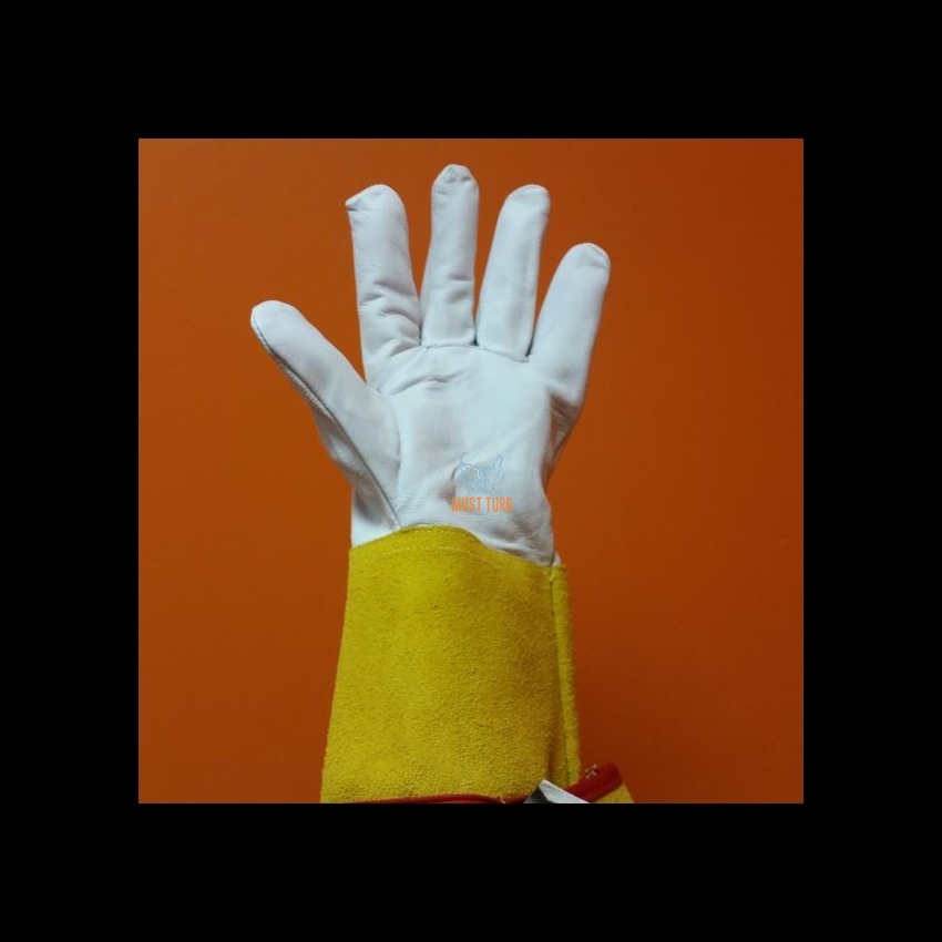 Kuumuskindlad keevituskindad KEVLAR® niidiga õmblused. Randmeosa looma alusnahast. Voodrita!