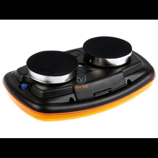 Kirjeldus: kollane, 18 eredat LEDi, 4 x AA patareidega (ei sisaldu), 180 vilkumist minutis, tööaeg üle 36h ühe komplekti patareidega, 3-way lüliti, magnetkinnitus, kaasas eraldiseisev tagumine raam.