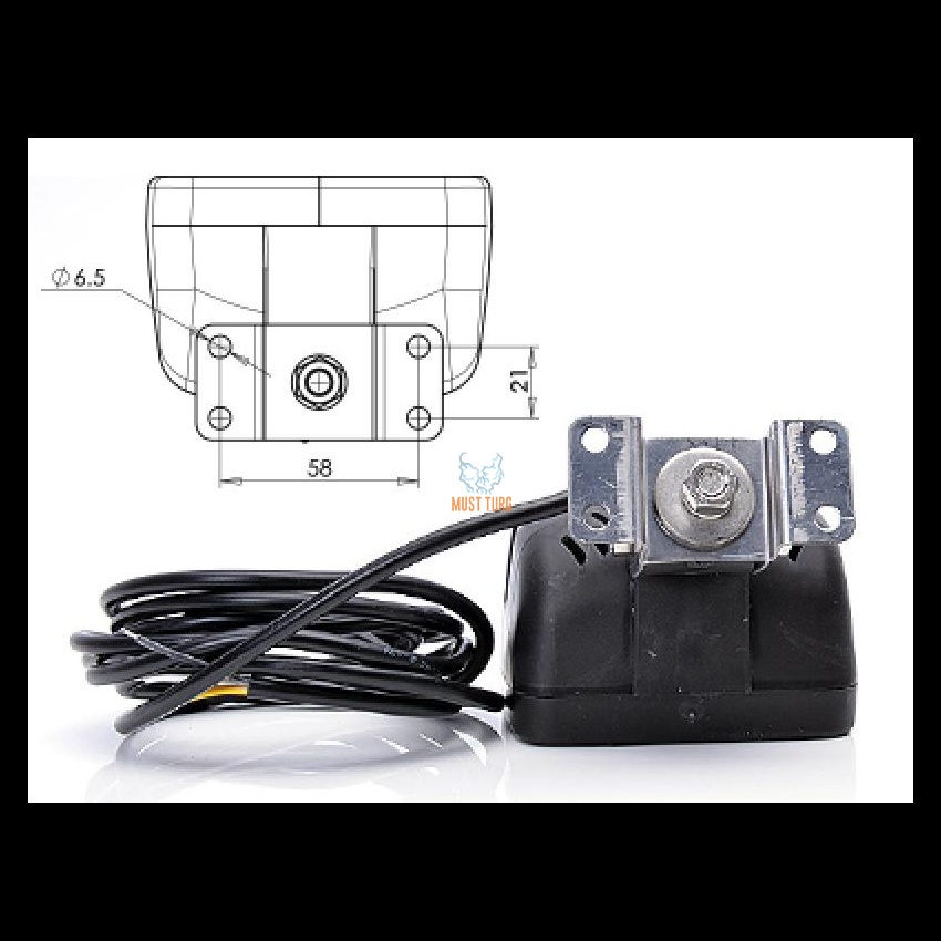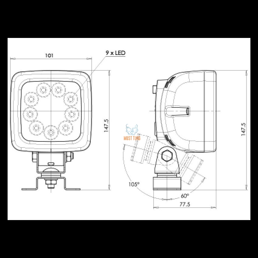 Kirjeldus: 9 LED, 1300/1980lm, kõrgus koos kronsteiniga 147.5mm, ECE, E, 10R, IP66/68, tagurdustule markeeringuga, polypropylene (PP) korpus, kinnitus: 4 x M6, vahe: 58x21mm, juhtmed 2500mm 3x0.75mm²