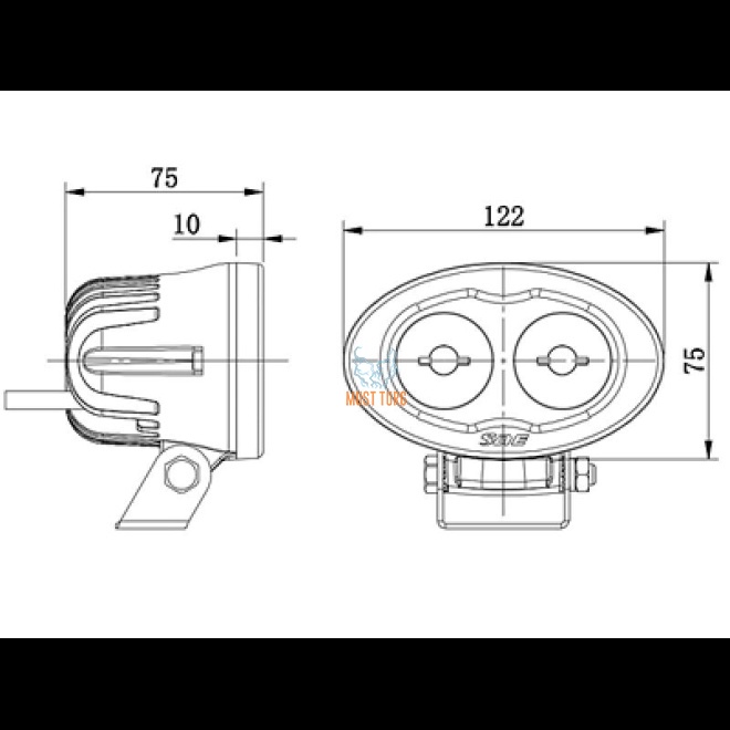 Kirjeldus: 2x3W Cree, sinine punktvalgus, näiteks tõstukitele, CE, RFI/EMC, IP68, alumiiniumkorpus, Lexan PC-klaas, kõrgus kinnitusjalaga 100mm