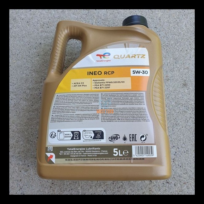 Total Quartz Ineo RCP 5W-30 on kõrgjõudlusega, täiustatud sünteetiline mootoriõli, mis on spetsiaalselt välja töötatud 1.5 BlueHDi turbomootoriga diiselmootoritele (sealhulgas uued Euro 6.2, 6.3 ja 6.4 standardid). See mootoriõli sobib ka bensiinimootoritele, mis vajavad PSA B71 2290 / B71 2297 heakskiitu.