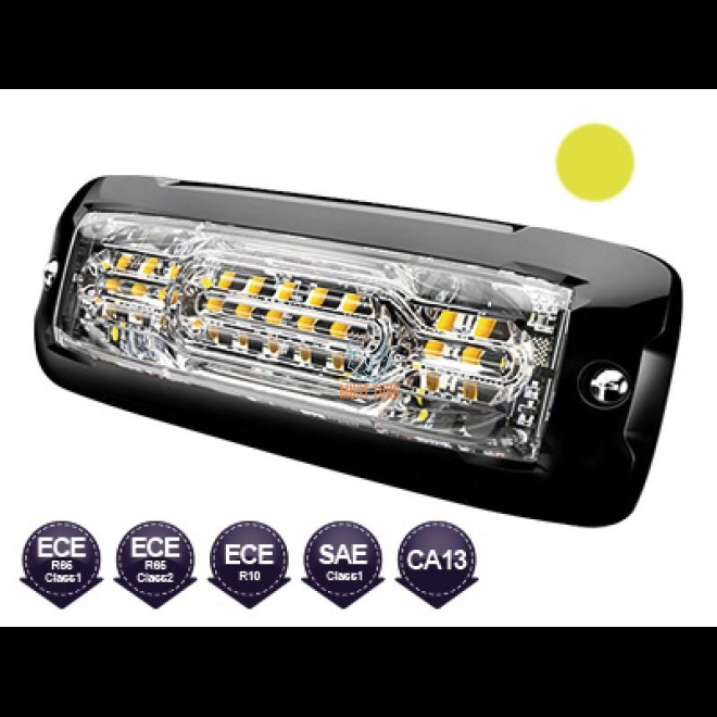 Kirjeldus: superõhuke 10mm, 12xvõimsus LED, Kollane vilkur, valge klaas, poldivahe 12cm, saab sünkroniseerida teiste märgutuledega, ECE R65 klassid 1 ja 2. ECE R10 EMC