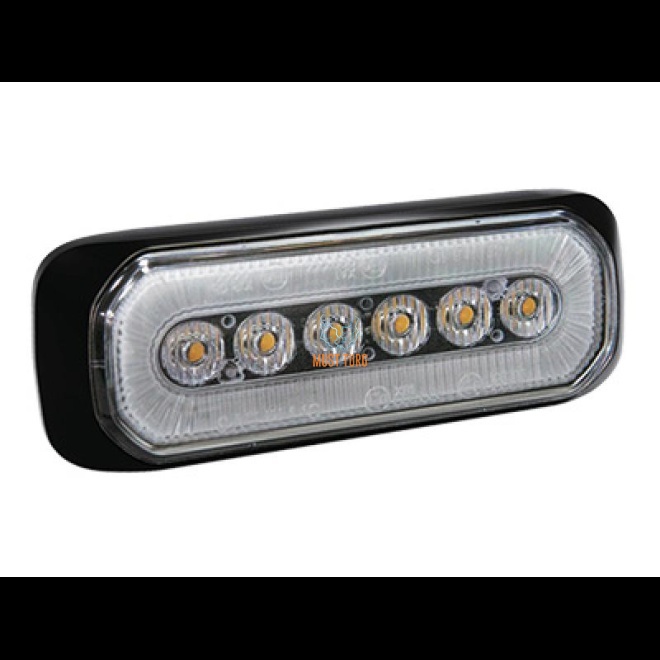 Kirjeldus: kollane märgutuli kollase Halo-rõngaga, märgutuli 6LED, Halo-rõngas 18LED, 14 vilkumisrežiimi, sünkroniseeritav teiste vilkuritega, max vool: 1.35A @12VDC / 0.75A @24VDC, sertifikaadid: SAE J595 Class1 (A/B/R/W); SAE J592 (A/R); SAE J2042 (A/R); CA Title13 (A/B/R); ECE R7 (R/W); ECE R10; ECE R65 (XA1, XB1); ECE R91 (A); IPx8