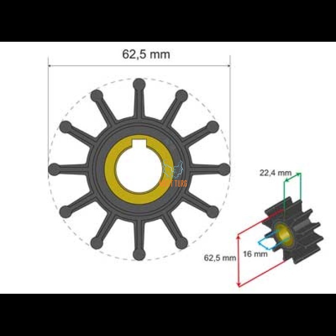 Kirjeldus: kopolümeeri/neopreeni MC segu, lõbusõidupaatidele, JMP, Sherwood, ISO9001, 62.5x16x22.4mm, 119g