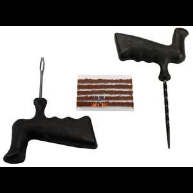 Komplekt sisaldab tubeless tööriista, rasplit ja 5 tk rehvipaika