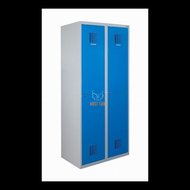 Kahest riietusruumi kapist liidetud moodul. Ühe kapi laius 400 mm. Võimalik ridamisi jätkates liita järgnevad moodulid. Turvaline kolme punkti lukustus. Ukse alumises ja ülemises osas perforeering, tagamaks korralikku ventilatsiooni. Kapp jagatud vaheseinaga kaheks, ülaosas lisariiul, riidepuu riputustoru, riputuskonksud kapis ja kapi uksel.