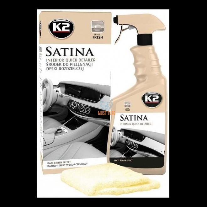 K2 SATINA on ainulaadne vahend armatuurlaua ja kõigi autos olevate plastide hooldamiseks. Mõeldud ka kõige nõudlikumale autoentusiastile. Tänu uuenduslikule koostisele taastab hooldusvahend plastik-, vinüül- või kummipinna originaalse välimuse, tungib sügavale materjali, rõhutades värvi ja selle loomuliku struktuuri, jätab sileda ja satiinviimistlusega pinna ilma läikiva efektita. Sisaldab tugevaid UV-filtreid ja antistaatilisi lisaaineid, ennetab mustuse ja tolmu nakkumist. Komplekt sisaldab 770 ml hooldusvahendit + mikrofiiberlappi.