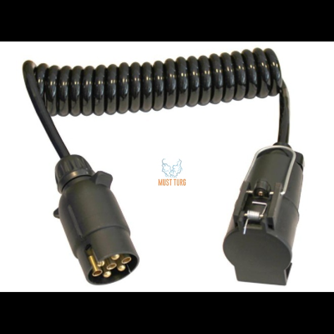 Kirjeldus: Spiraal pikendusjuhe 2.5m, 7-juhtmega pistikud (plastikust), ISO 1724