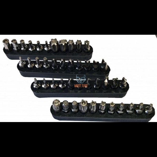 eriotsikud 1/4" erinevad, 44 tk (5-Torx, nelikant, kahvel, 3-rist, nihkes rist jne)