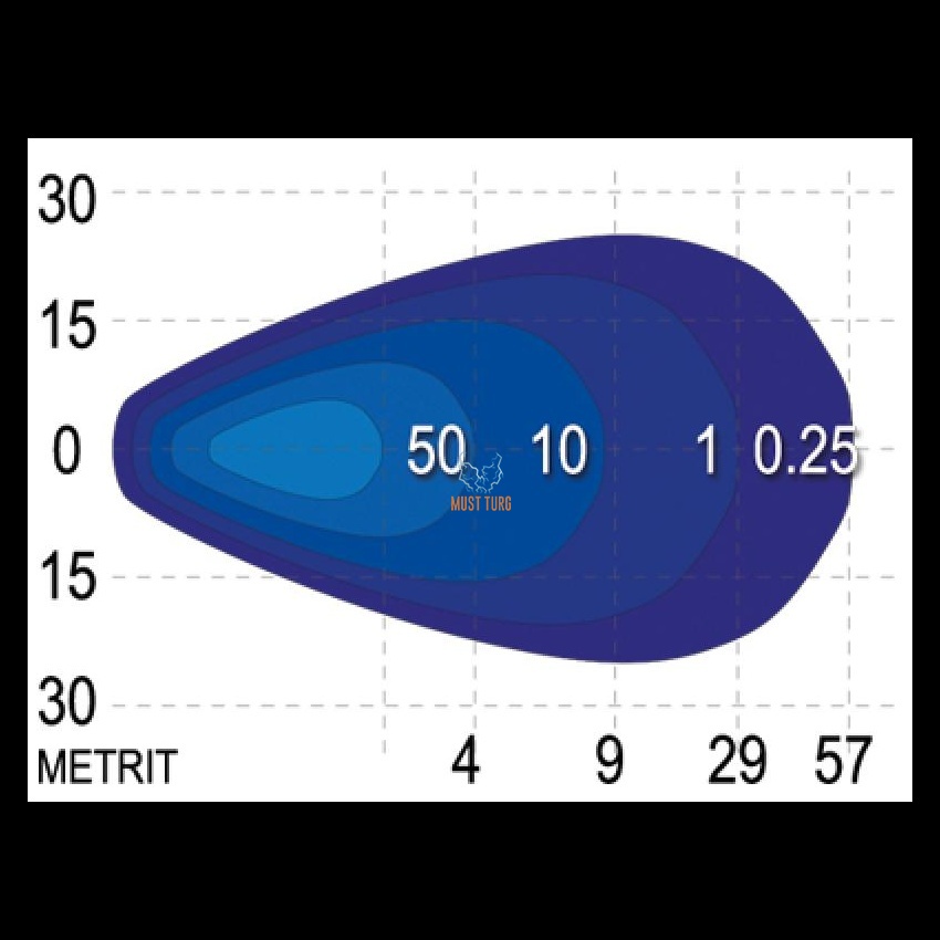 Kirjeldus: 8 x 1.5W Osram, lai valgusvihk, 1136lm, CE, 10R, RFI/EMC, IP68. 2-generatsiooni reflektor, alumiiniumkorpus, PMMA-klaas, kõrgus koos kinnitusjalaga 89mm, Deutsch-pistik