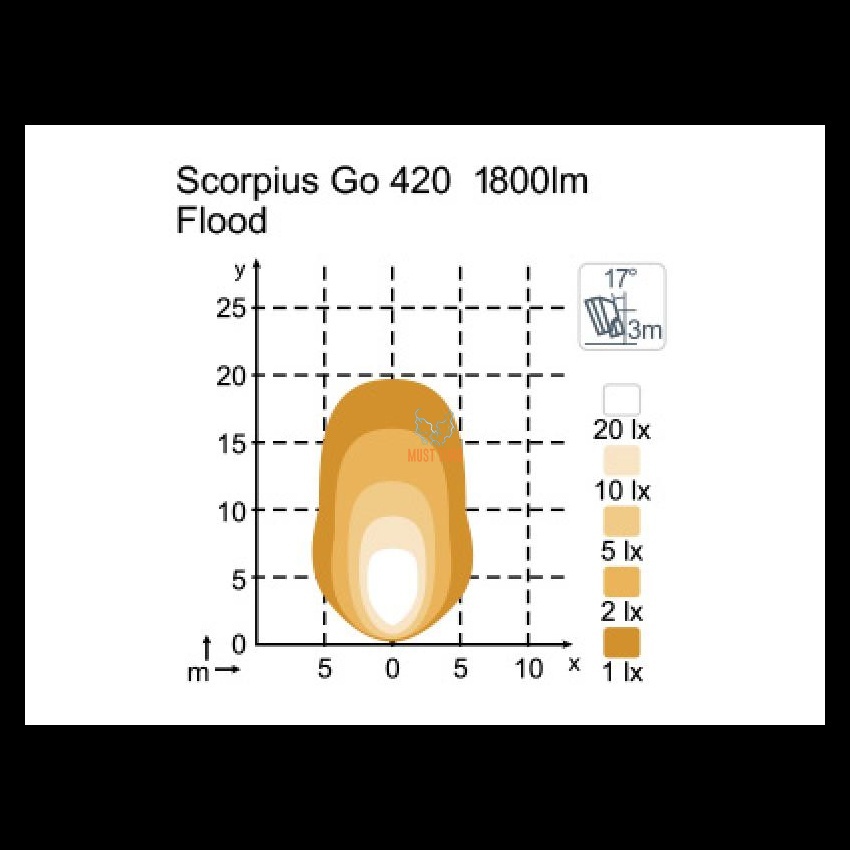 Kirjeldus: Scorpius GO 420, 1800lm, värvitemperatuur 5000K, lai valgusvihk, EMC-sertifikaat: CISPR25, Class 5, ADR approved, integreeritud Deutsch pistik 2-klemmiga, IP68, 0.6kg