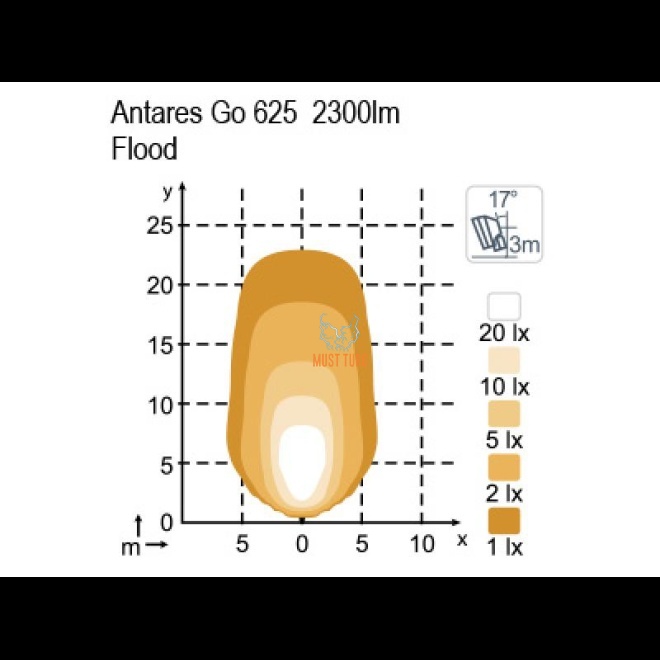 Kirjeldus: Antares GO 625, 2300lm, värvitemperatuur 5000K, lai valgusvihk, EMC-heakskiit: CISPR25, Class 5, ADR sert, integreeritud Deutsch 2-klemmiga pistik, IP68, 0.8kg