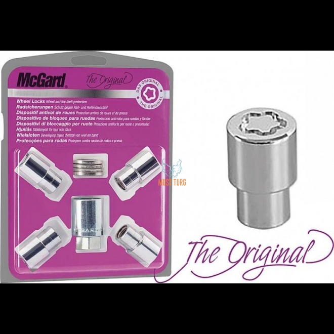 McGard turvamutrite komplekt (4 mutrit + 1 võti). Turvamutrite kinnikeeramiseks ei tohi kasutada suruõhu mutrikeerajat! Iga pakiga on kaasas ID number, selle koodi alusel saab tellida varupadruni!