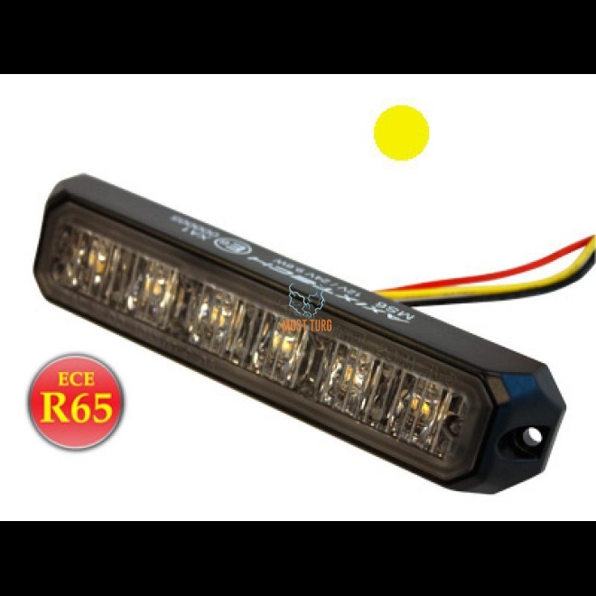 Kirjeldus: Kollane vilkur, valge klaas, 6xLED, 5 vilkumisrežiimi, sünkroonitav teiste vilkuritega, IP67, R65, 12V/0.4A / 24V/0.22A, SAE / Title XIII / E6 R65/e13