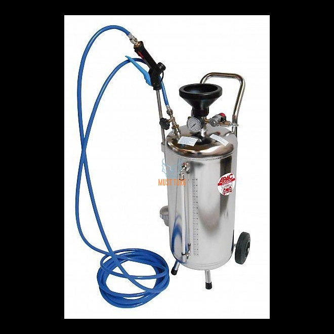 Roostevabast terasest valmistatud vahuprits. Taseme jälgimise toruga. Anum 23 l. Voolik 5 m, mille otsas püstol. Max 8 bar. Pikkus 805 mm, läbimõõt 300 mm.