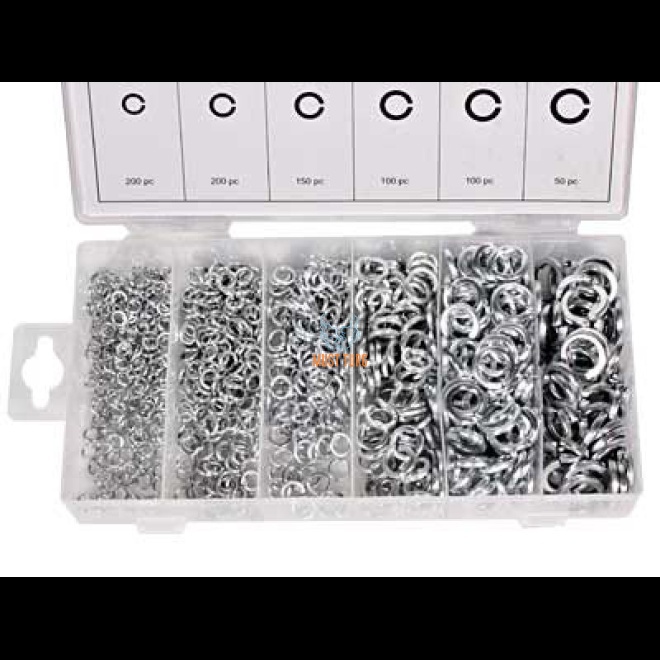 Kirjeldus: Spring washers 800pcs, M4-M12, size (pcs): M4 (200), M5 (200), M6 (150), M8 (100), M10 (100), M12 (50)