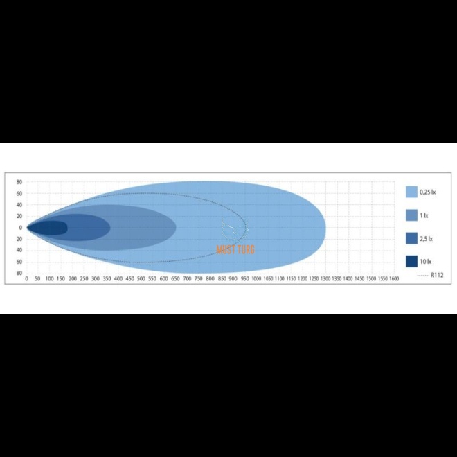 Kirjeldus: 4500K, 12V: 7,68A (täisvõimsus), 3,11A (R112), 7400lm (täisvõimsus), 4000 (R112), 1 lux @ 650m (täisvõimsus), 475m (R112), E-mark R10, R112